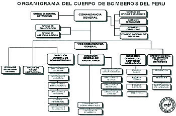 Die Feuerwehr in Peru Die Cuerpo General de Bomberos Voluntarios del Peru (Körperschaft der Freiwilligen Feuerwehr in Peru) ist eine hoheitlich und mit gesetzlichen Aufgaben belegte Organisation innerhalb der Republik Peru. In ihrem administrativen Aufbau, der politischen Ausrichtung und der wirtschaft-lichen Verwaltung ist sie autonom. Zum besseren Verständnis des Aufbaues hier das nachfolgende Organigramm.